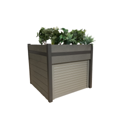 WPC composite wood planter and robotmower garage delivered with the automatic closing kit