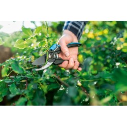 Sécateur ergonomique et réglable, qui permet d'ajuster l'ouverture au diamètre de la branche et à la main de l'utilisateur
