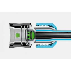 Een verlengd klemsysteem zorgt voor een nauwkeurige verbinding met de slang