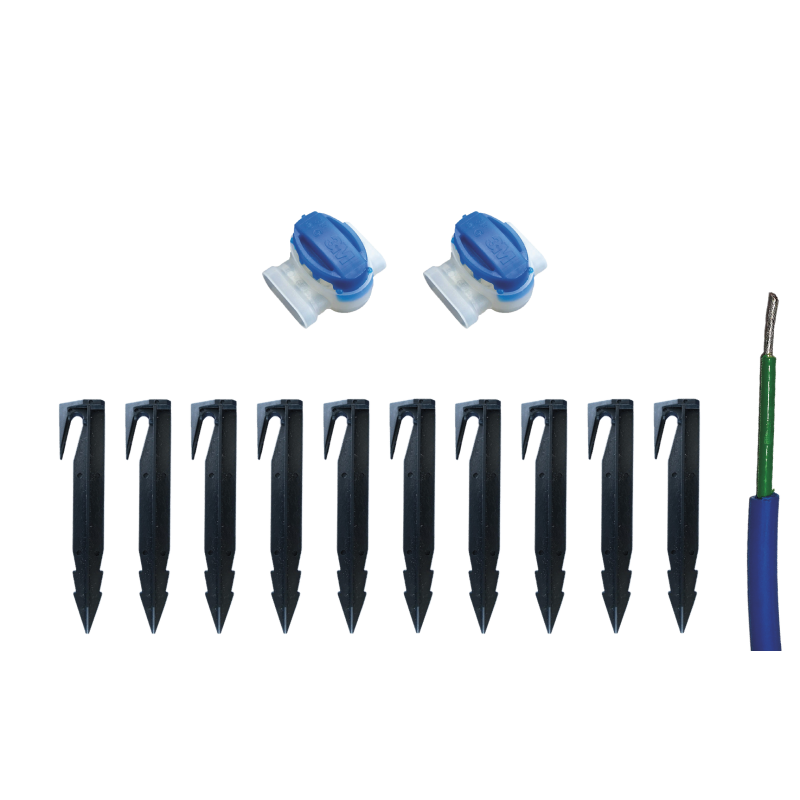 Reparatiekit voor GCC kabel (Garden Clean Cable) met : - 5 meter kabel (ref GCC 300) - 2 watercichte verbinders - 10 ankers ABS (ref CC15CLOU-ABS)