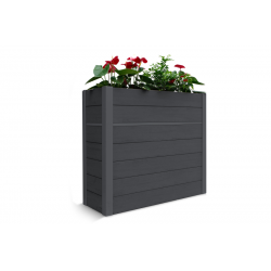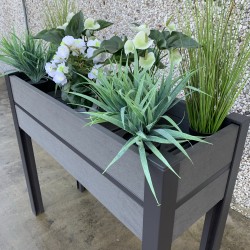 Plantenbak is WPC graniet grijs, steunen in aluminium gelakt
