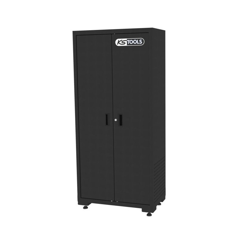 Geperforeerde zijkanten in het onderste deel Gecentraliseerd sluitsysteem Verstelbare voeten 2 planken met glijbanen 1 verstelbare plank 2 laden met glijbanen
